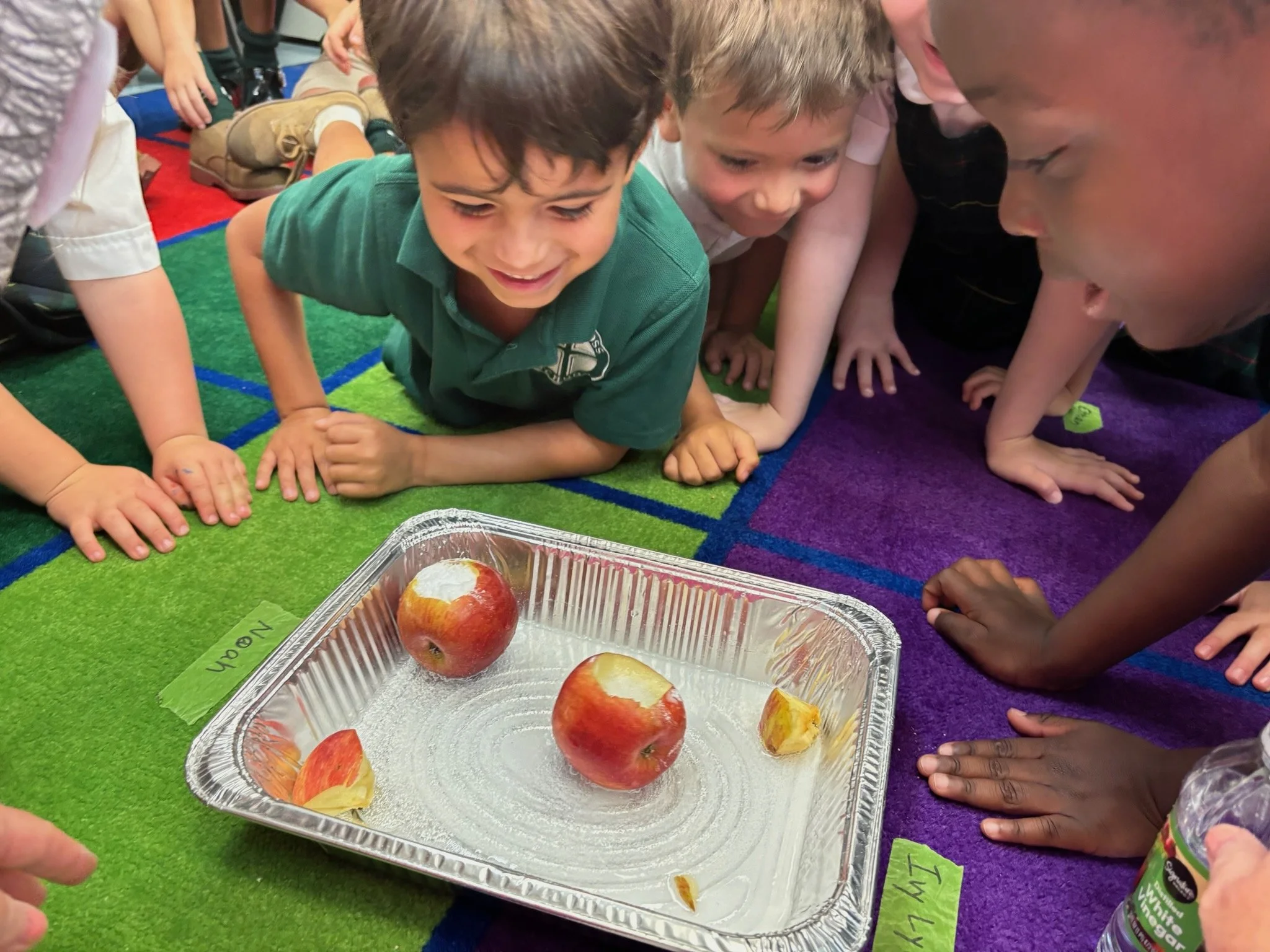 Science instruction centers on Physical, Life, and Earth Sciences. Students explore concepts through hands-on investigations, observation, questioning, discussion, and data analysis. Engaging activities such as examining a pumpkin or observing a butterfly’s life cycle bring learning to life.
