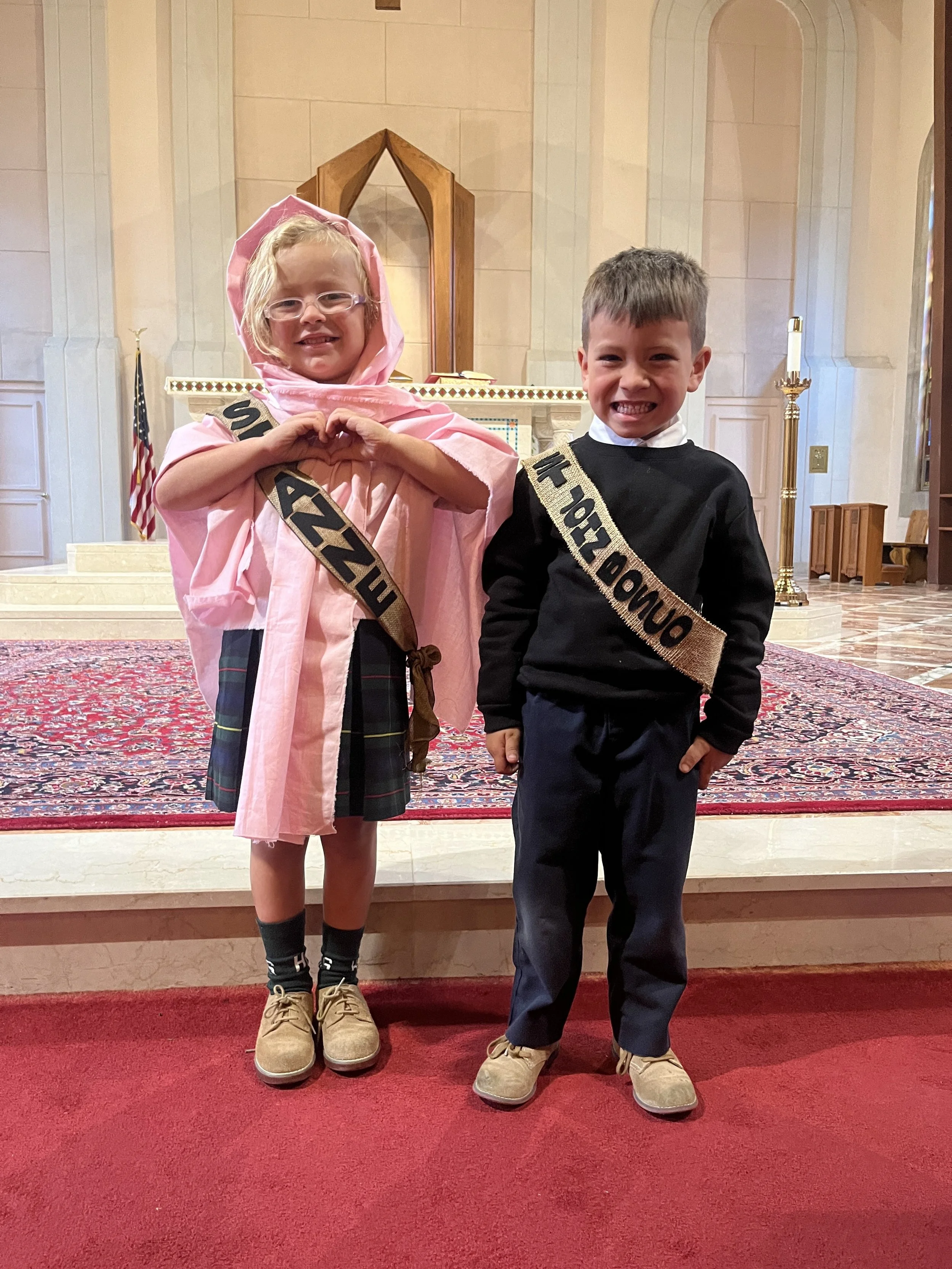 Instruction is centered on the key elements of the Archdiocese of Washington guidelines including knowledge of the faith, liturgy and sacraments, morality, prayer, and education for living in the Christian community. Students form an understanding that Jesus loves them and wants them to love others in return. Students are introduced to scripture, the Holy Family, Lent, Good Friday, Easter/the Resurrection story, Advent/Christmas, saints, and prayers. Participation in school-wide service projects helps students to understand the importance of serving others.